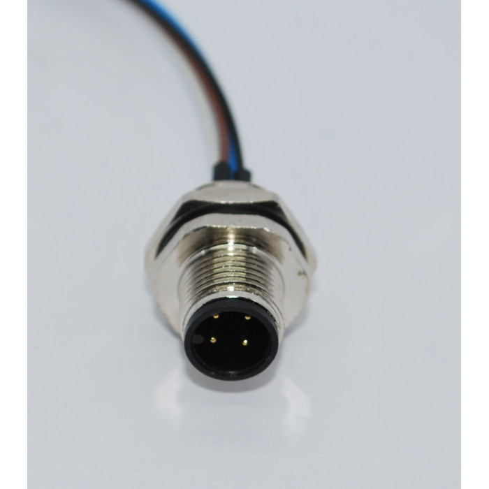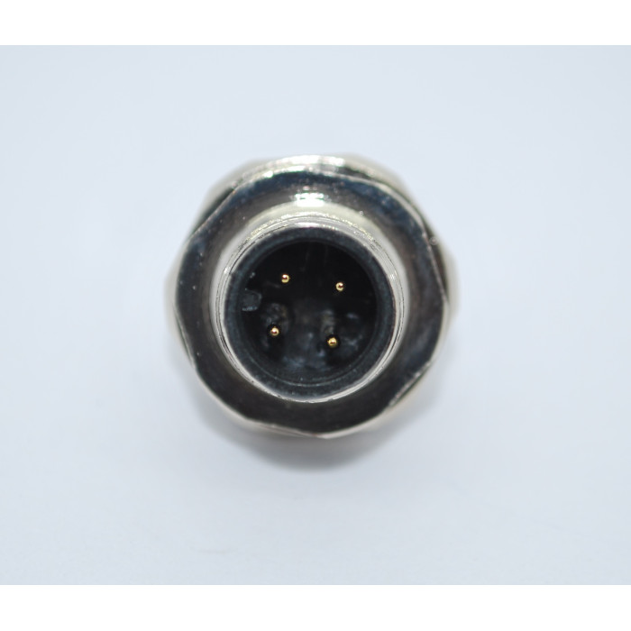Metrik 12 ölçüde Ip67 sıvı koruma sınıfına sahip 4 Pin Önden Somunlu Panel Tipi Erkek konnektördür.