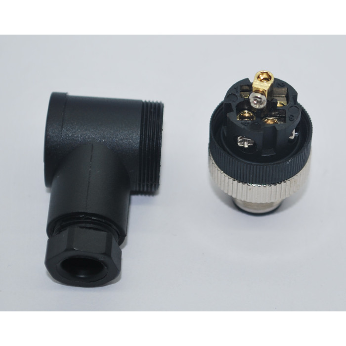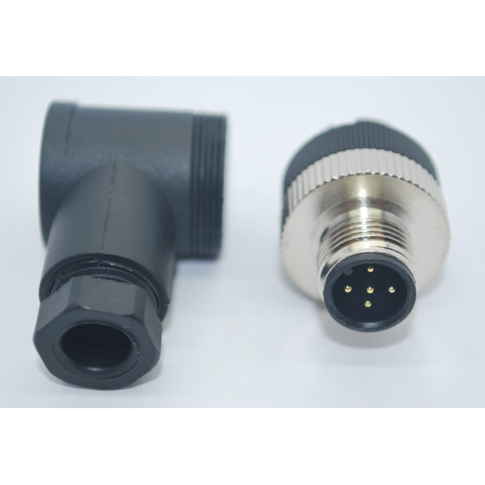 Metrik 12 ölçüde Ip67 sıvı koruma sınıfına sahip 5 Pinli 90 Derece Erkek Konnektör.