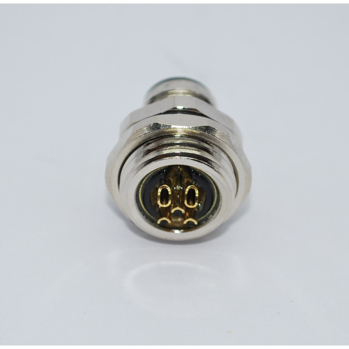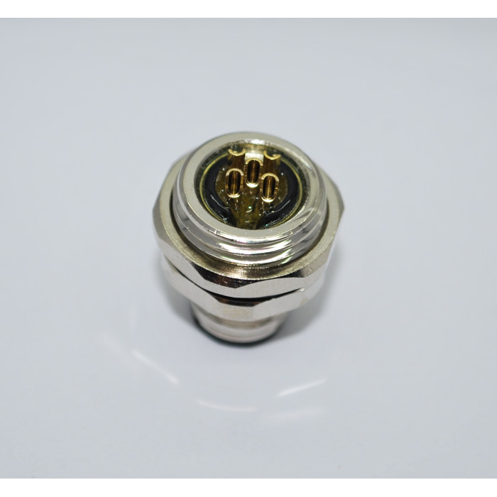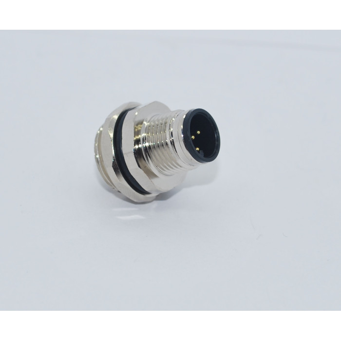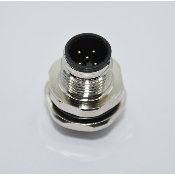 Metrik 12 ölçüde Ip67 sıvı koruma sınıfına sahip 5 Pin Önden Somunlu Panel Tipi Erkek konnektördür.