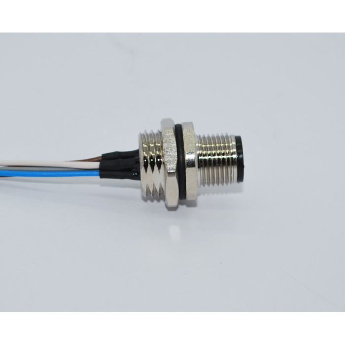 Metrik 12 ölçüde Ip67 sıvı koruma sınıfına sahip 5 Pin Önden Somunlu Panel Tipi Erkek konnektördür.
