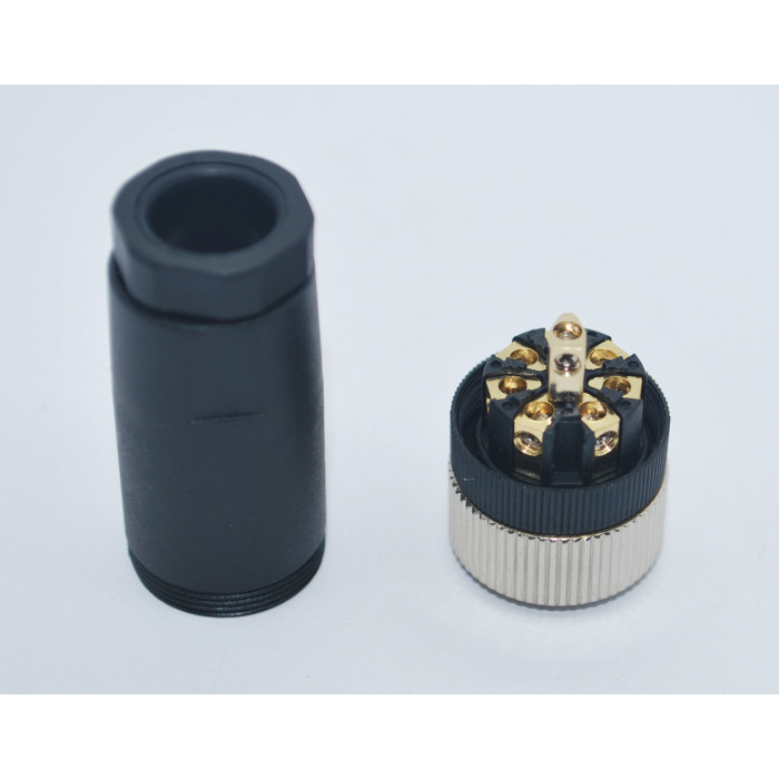 Metrik 12 ölçüde Ip67 sıvı koruma sınıfına sahip 8 Pinli Düz Dişi Konnektör.