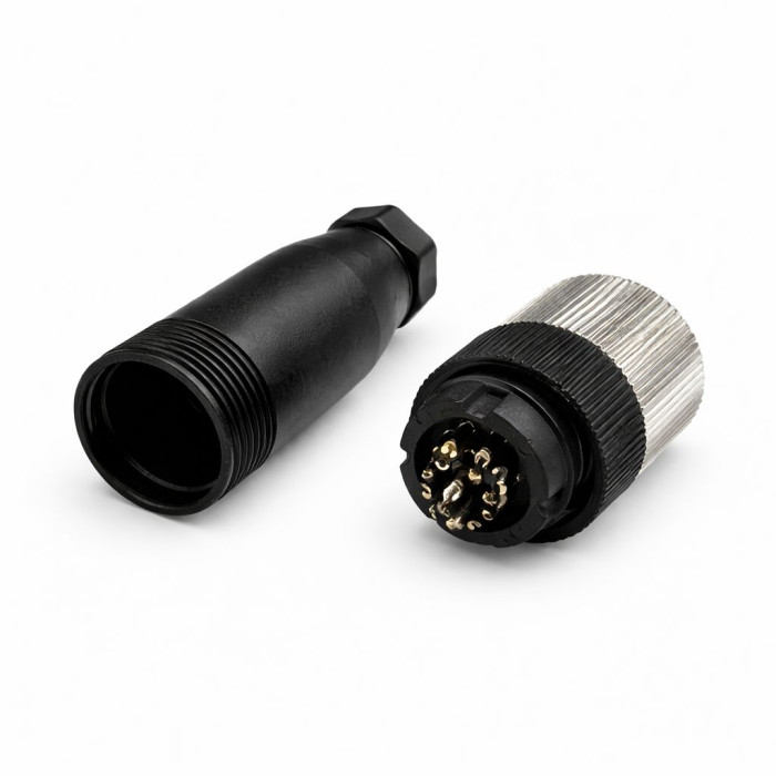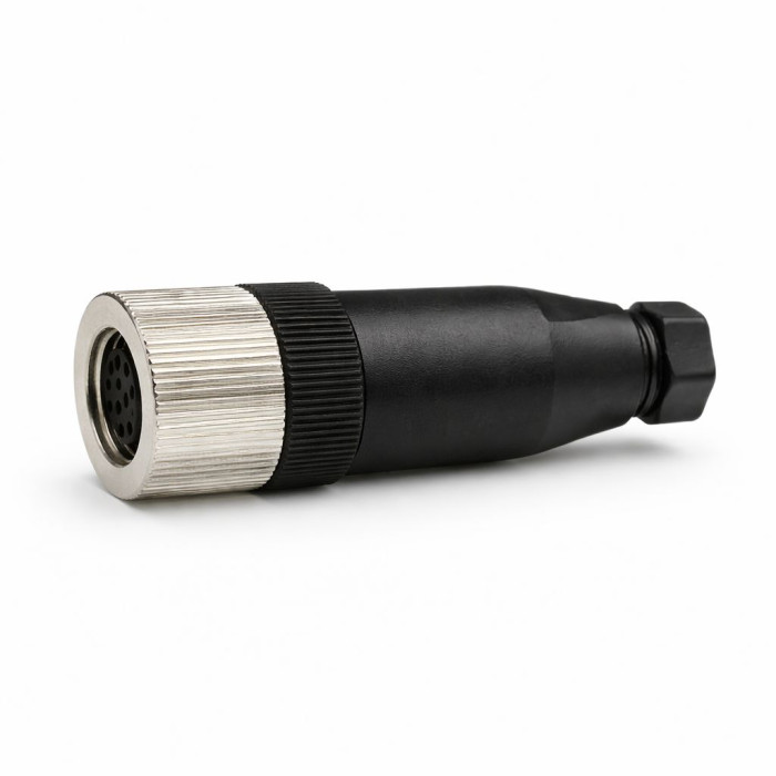 Metrik 12 ölçüde Ip67 sıvı koruma sınıfına sahip 12 Pinli Düz Dişi Konnektör.