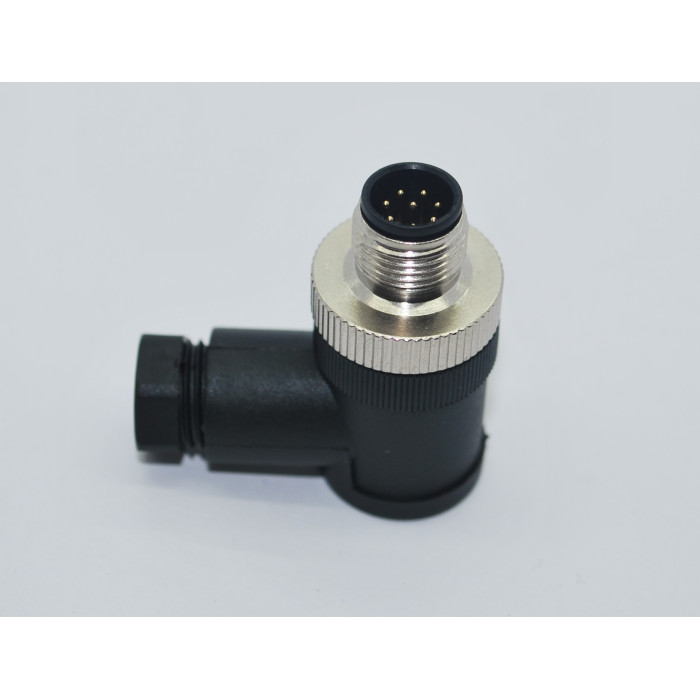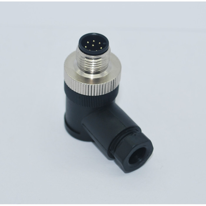 Metrik 12 ölçüde Ip67 sıvı koruma sınıfına sahip 8 Pinli 90 Derece Erkek Konnektör.